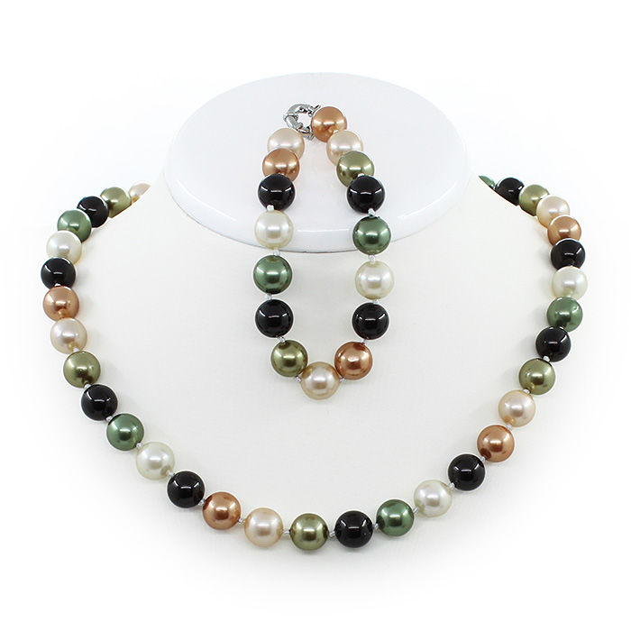 Комплект бусы и браслет майорка mix зеленый и золотой, круглая 10мм, короткие 45см