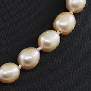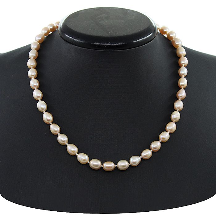 Бусы розовый жемчуг, ровный овальный 7х9мм, короткие 45см