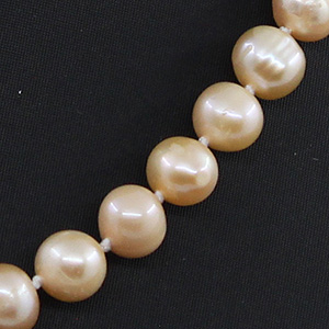 Жемчужины с хорошим блеском, имеют неболшие бороздки, которые подчеркивают естественную красоту жемчужин. Диаметр бусин 7мм, длина бус 48см.