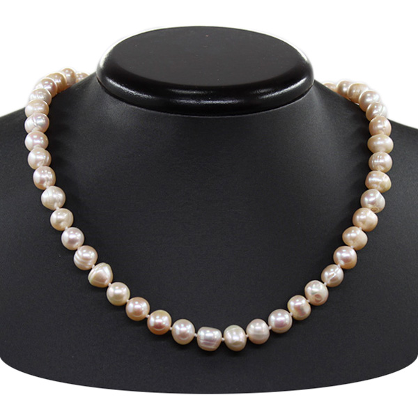 Бусы розовый жемчуг, неровный круглый 8-9мм, короткие 47см