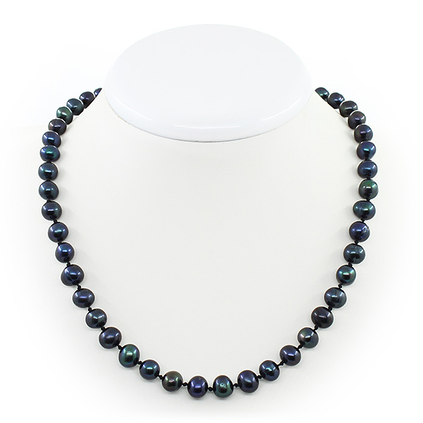 Бусы черный жемчуг, неровный круглый 8мм, короткие 45см