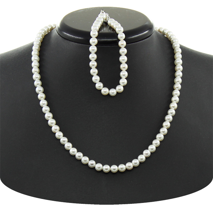 Комплект Бусы и браслет майорка белая, круглые 6мм, короткие 45см