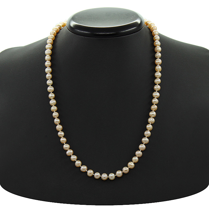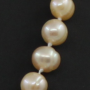 Жемчужины в этих бусах небольшого размера с хорошим тёмно-розовым перламутровым блеском. Диаметр бусин 7мм, длина изделия 48см.