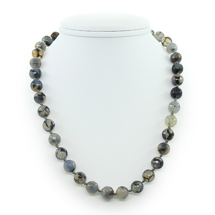 Бусы агат "Вены дракона", круглые граненые 10мм, короткие 45см