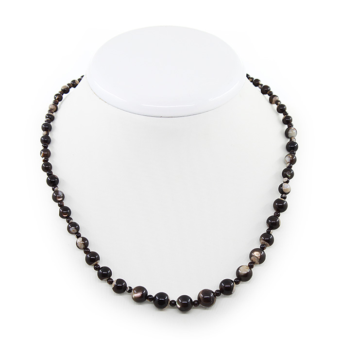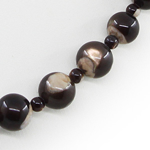Бусы перламутр коричневый, разноразмерные круглые 4...9мм, короткие 47см