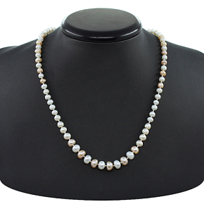 Жемчужный микс - в одних бусах используется белые и розовые оттенки жемчуга. Диаметр бусин от 6 до 8мм, длина бус 45см.