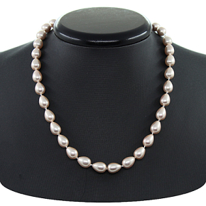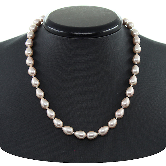 Капли искусственного жемчуга собраны в привлекательные бусы. Размер бусин 10х13мм, длина изделия 45см.
