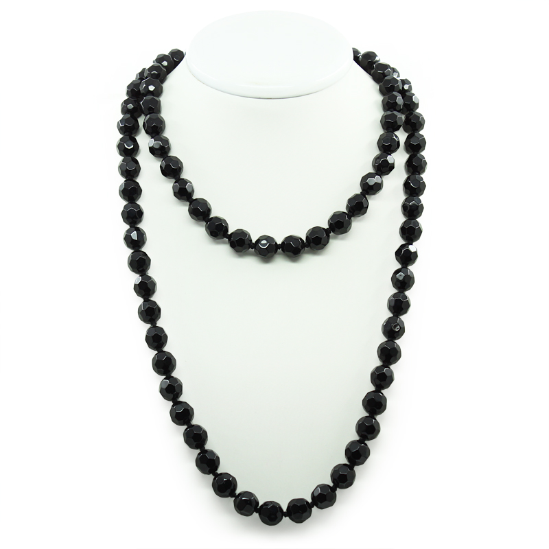 Бусы агат черный имитация, круглые граненые 12мм, длинные 126см