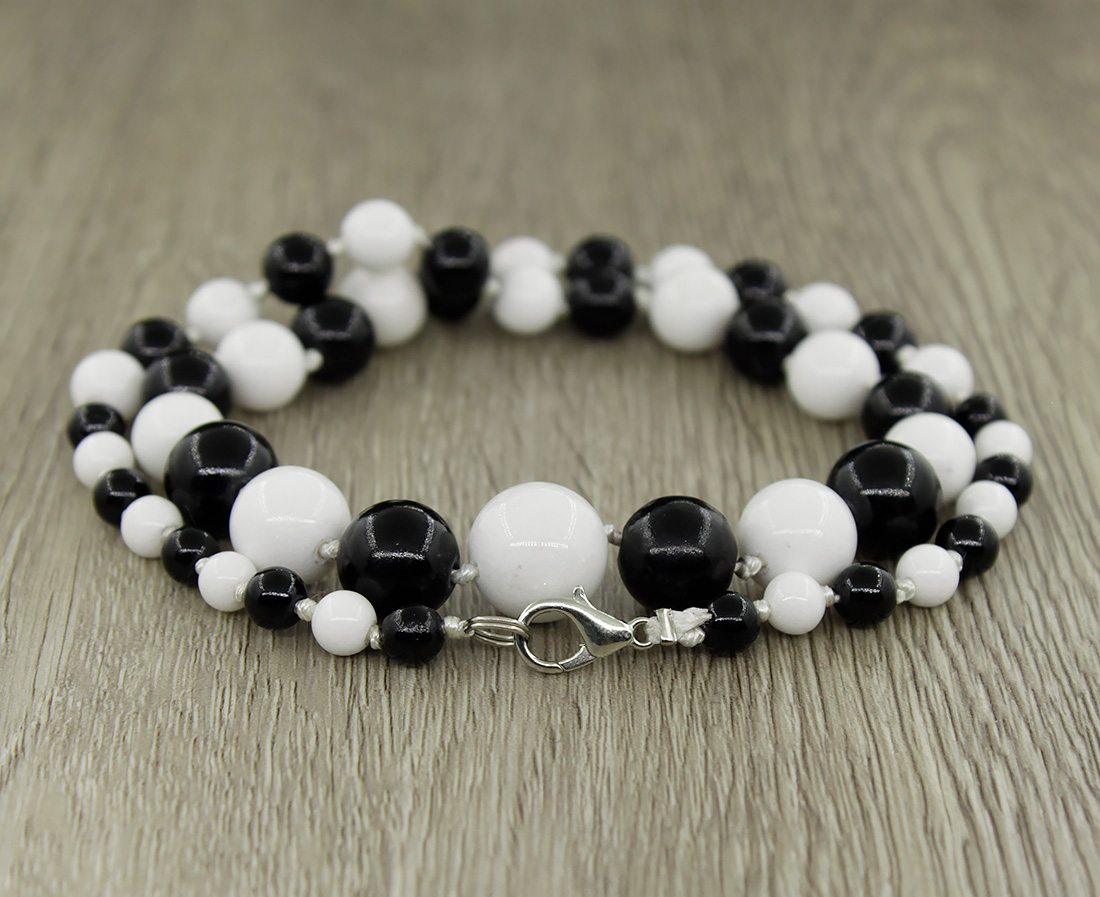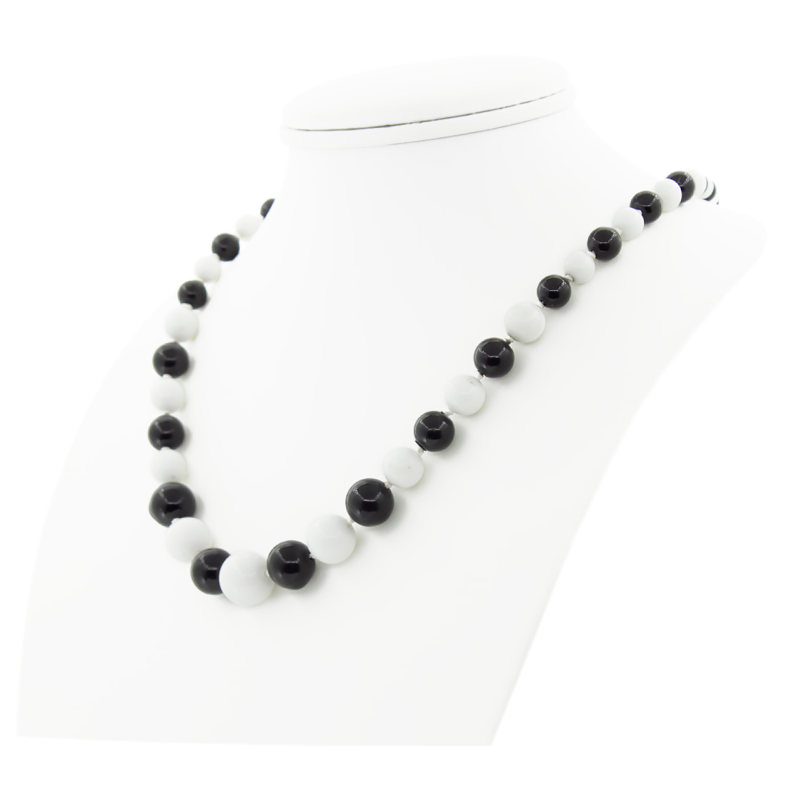 Бусы агат белый и черный (имитация) "Кармен", разноразмерные 6..14мм, короткие 50см