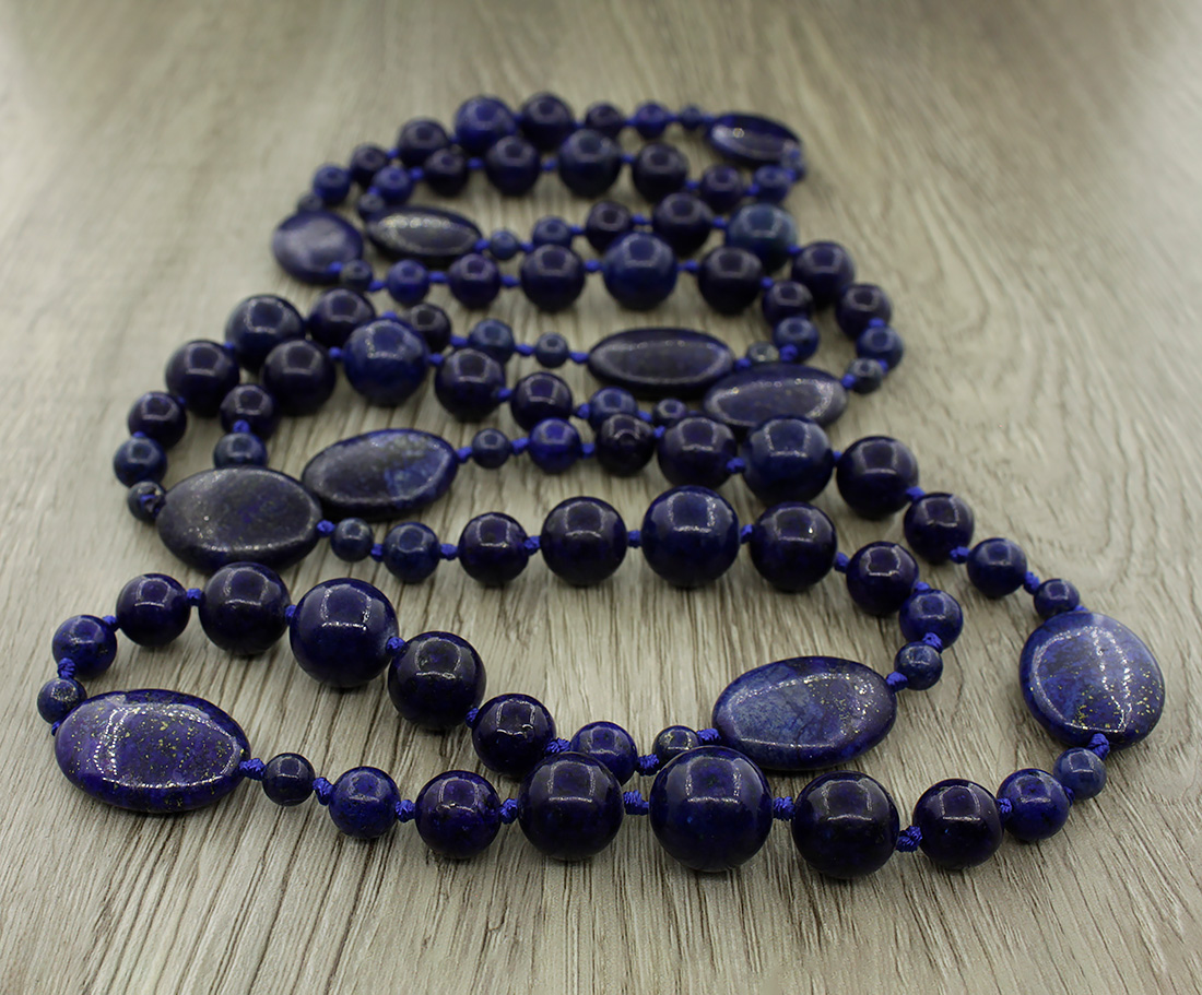 Лазурит (Афганистан), разноразмерные круглые с плоскими овалами 18х25мм, бусы "Стихия", длина бус 136см