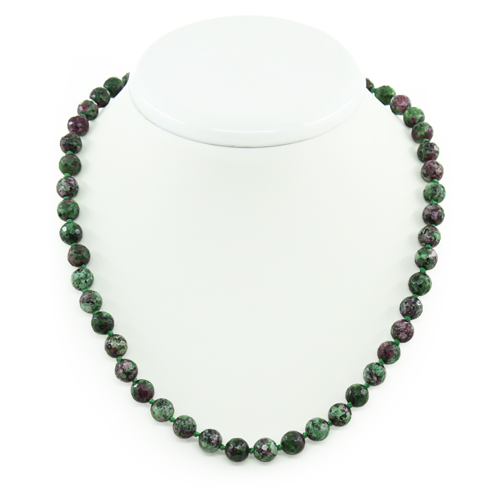 Бусы циозит (цоизит), круглые граненые 8мм, короткие 45см