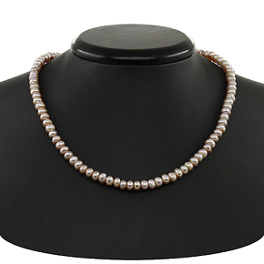 Жемчужные бусы из натурального темно-розового жемчуга, форма которого называется кукуруза. Диаметр бусин 6мм, длина изделия 42см.