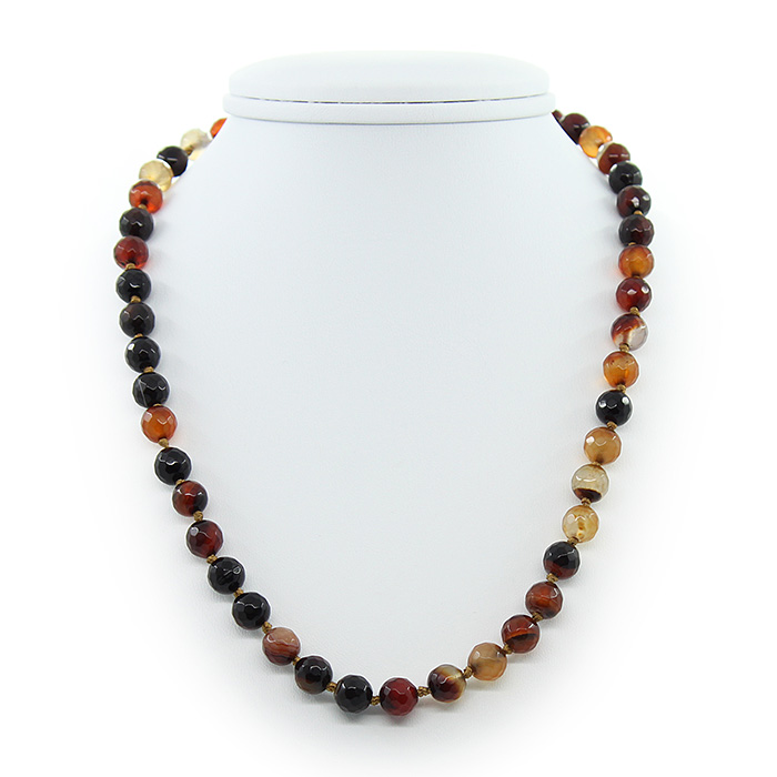 Бусы агат коричневый, круглые граненые 8мм, короткие 45см
