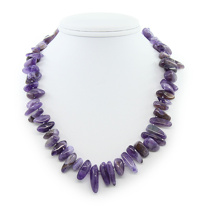 Бусы из гальки натурального аметиста длиной 47см.