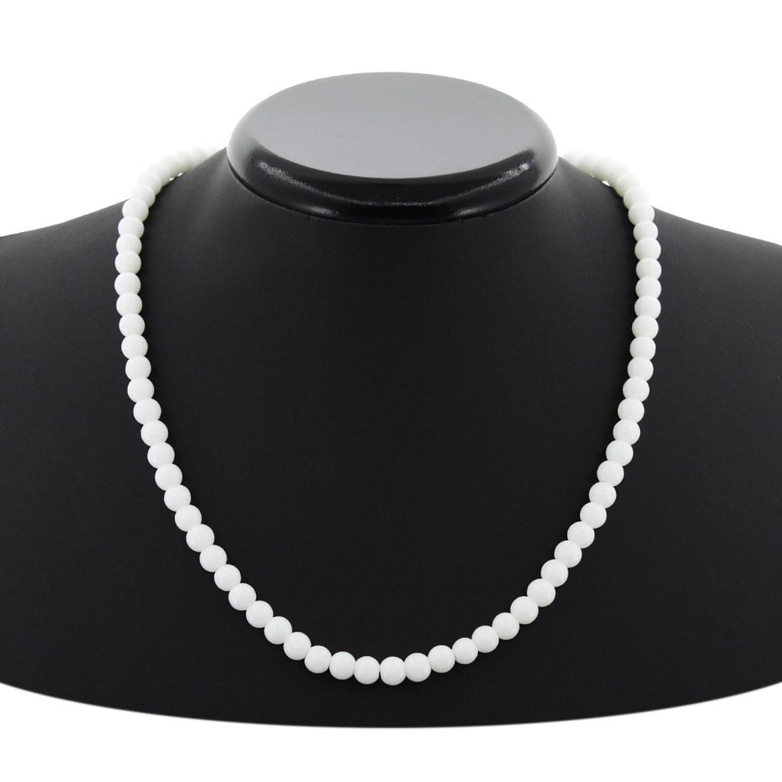 Бусы из натурального кальцита, который называют белым агатом, выполнены без узелков между бусинами. Особенно привлекательно впишутся в Ваш образ с контрастным цветом одежды. Диаметр бусин 6мм, длина изделия 46-51см, регулируется с помощью цепочки.
