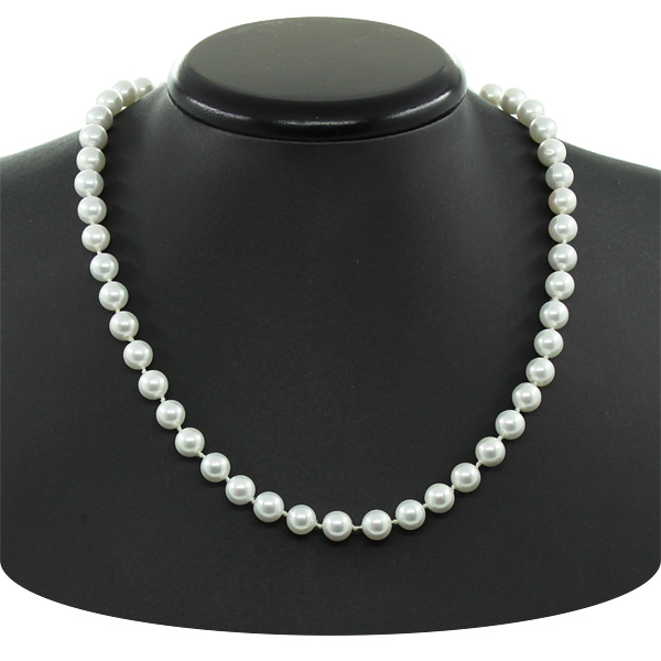 Бусы майорка белая, круглые 8мм, короткие 47см