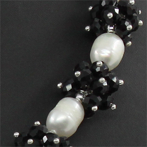 Бусы белый жемчуг "Смородинки", овальный 9х12мм, с гранеными вставками "шпинель черная", корткие 45см