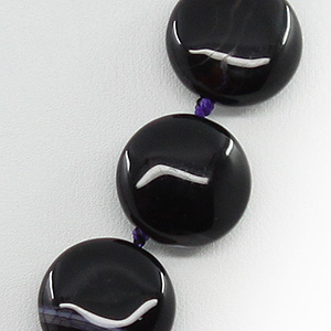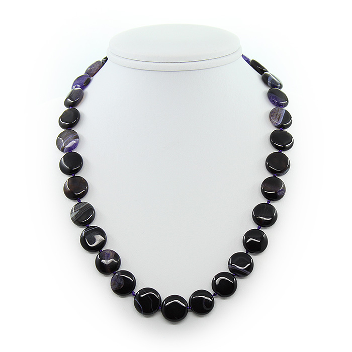 Бусы агат черный с фиолетовым, плоские круглые 15мм, короткие 45см
