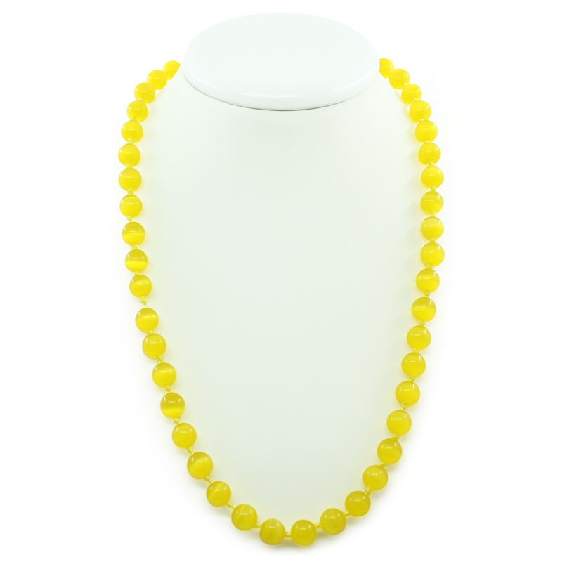 Бусы кошачий глаз желтый "Колибри", круглые 10мм, средние 61см