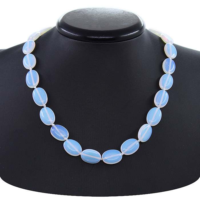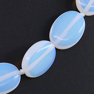 Бусы лунный камень, плоские овальные 13х18мм, короткие 49см