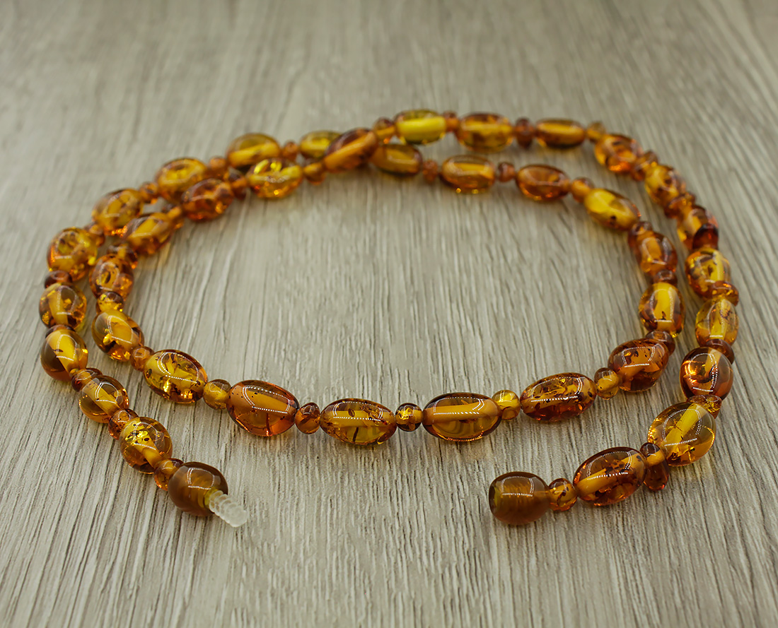 Янтарь светлый, овальные бусины и мелкая галька, длиной 56см