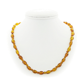Бусы из натурального светлого янтаря хорошо подойдут к Вашему повседневному или праздничному образу. Изготовлены из овальных бусин и мелкой гальки. Застежка раскручивается в две стороны, замаскирована в цвет бус. Средний размер овальных бусин 7x11мм, гальки 3x6мм. Длина бус 56см.