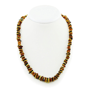 Янтарь прозрачный, бусы из гальки 4-х цветов, длиная изделия 55см