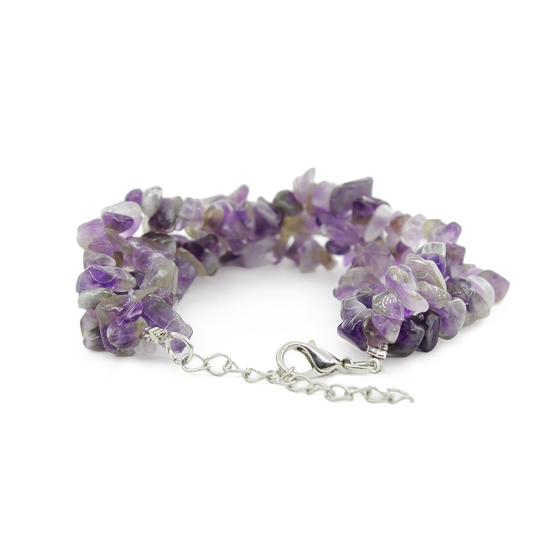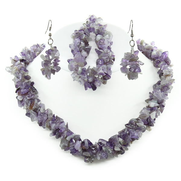 Комплект аметист "Василиса", галька, бусы + браслет + серьги