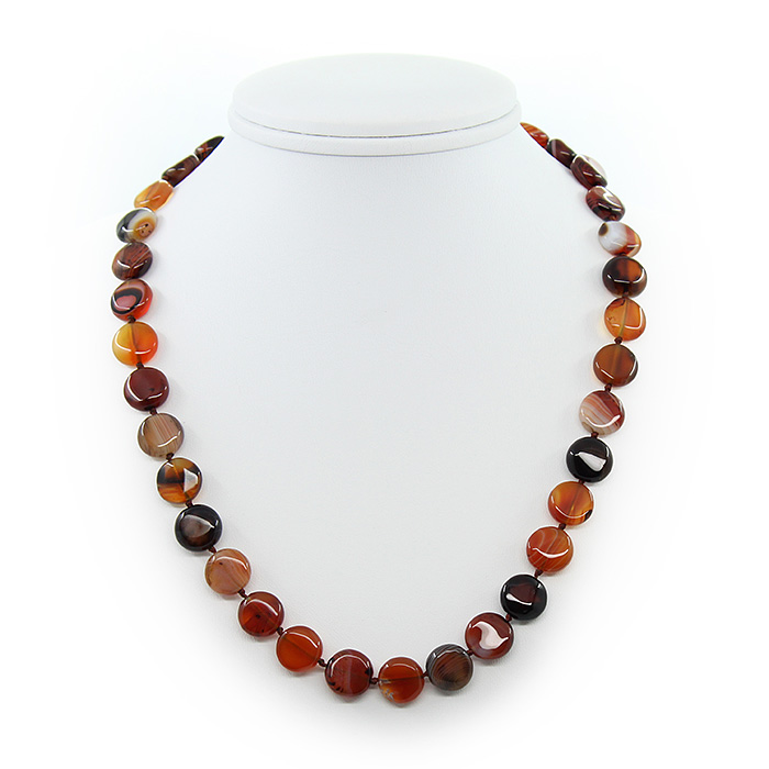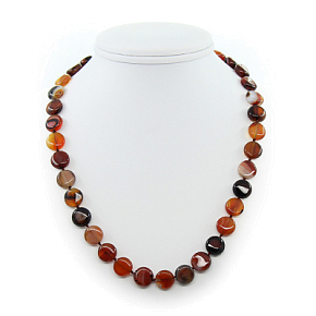 Бусы агат коричневый бразильский, плоские круглые 12мм, короткие 46см