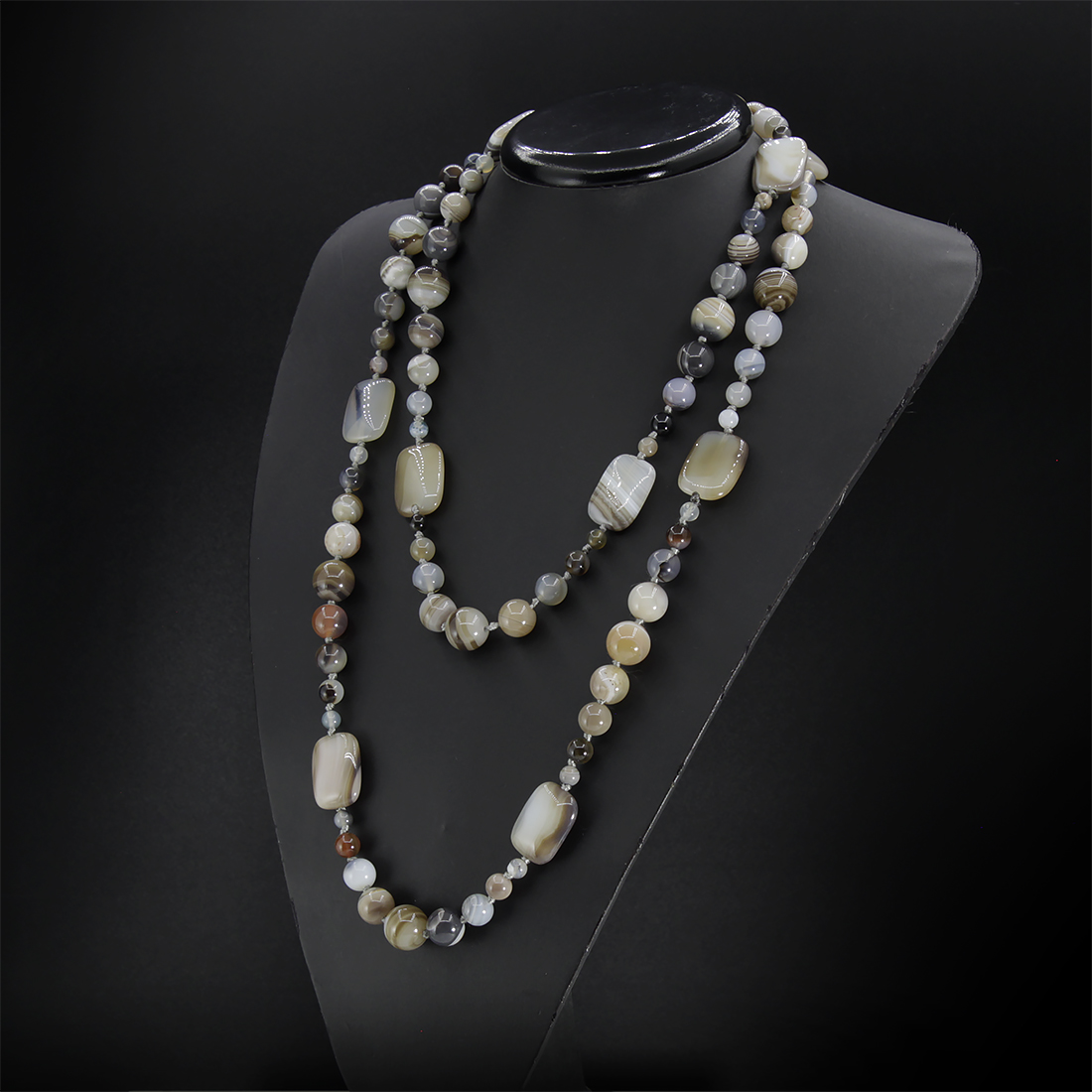 Агат серый (Бразилия), плоские прямоугольные бусины 18x25мм, бусы "Гармония" длиной 130см