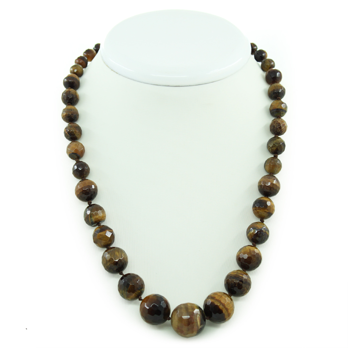 Бусы тигровый глаз, разноразмерные круглые граненые 8...17мм, короткие 48см