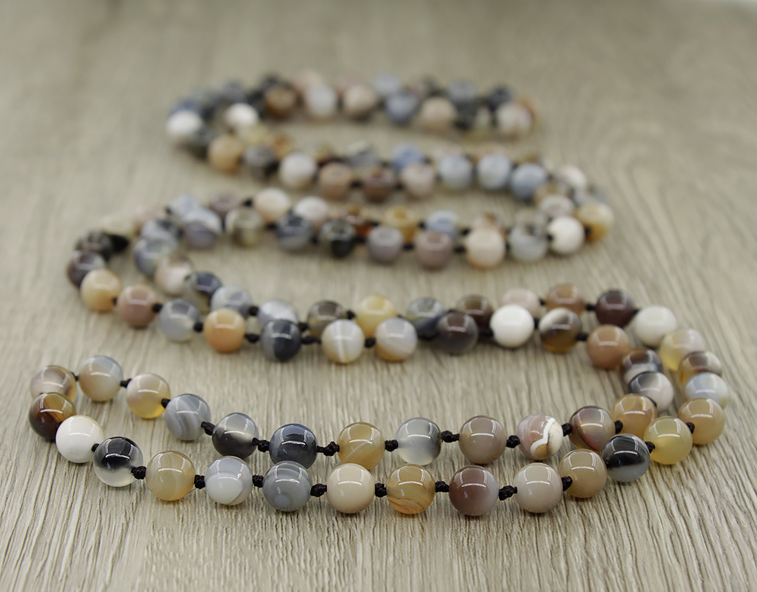 Бусы агат серый, круглые 8мм, длинные 124см