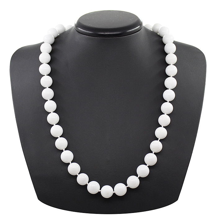 Нитка бус средней длины из шариков натурального кальцита, называемого белым агатом. Диаметр шариков 14мм, длина изделия 60см.