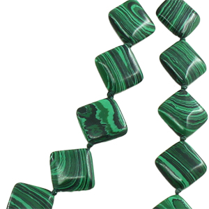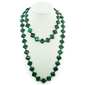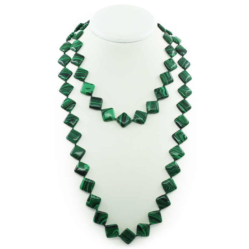 Бусы малахит (имитация), плоские ромбики 14мм, длинные 112см
