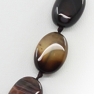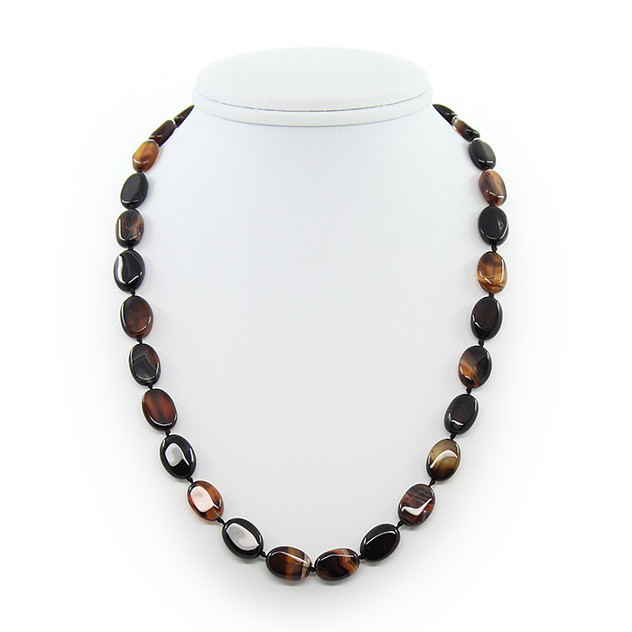 Бусы агат коричневый, плоские овальные 10х14мм, короткие 45см