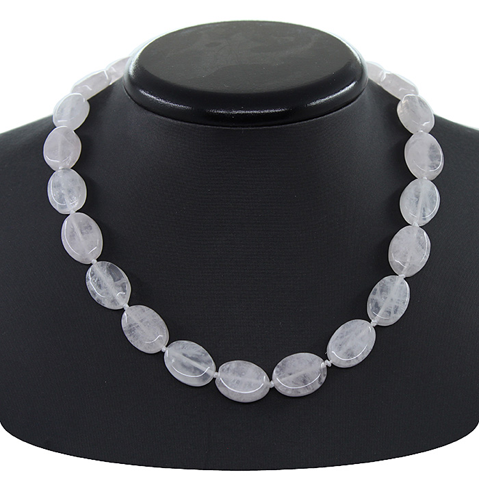 Бусы кварц розовый, объемные овальные 13х18мм, короткие 45см