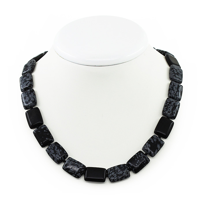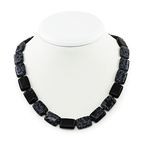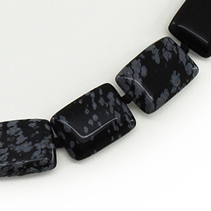 Бусы обсидиан снежный, плоские прямоугольные 13х18мм, короткие 50см