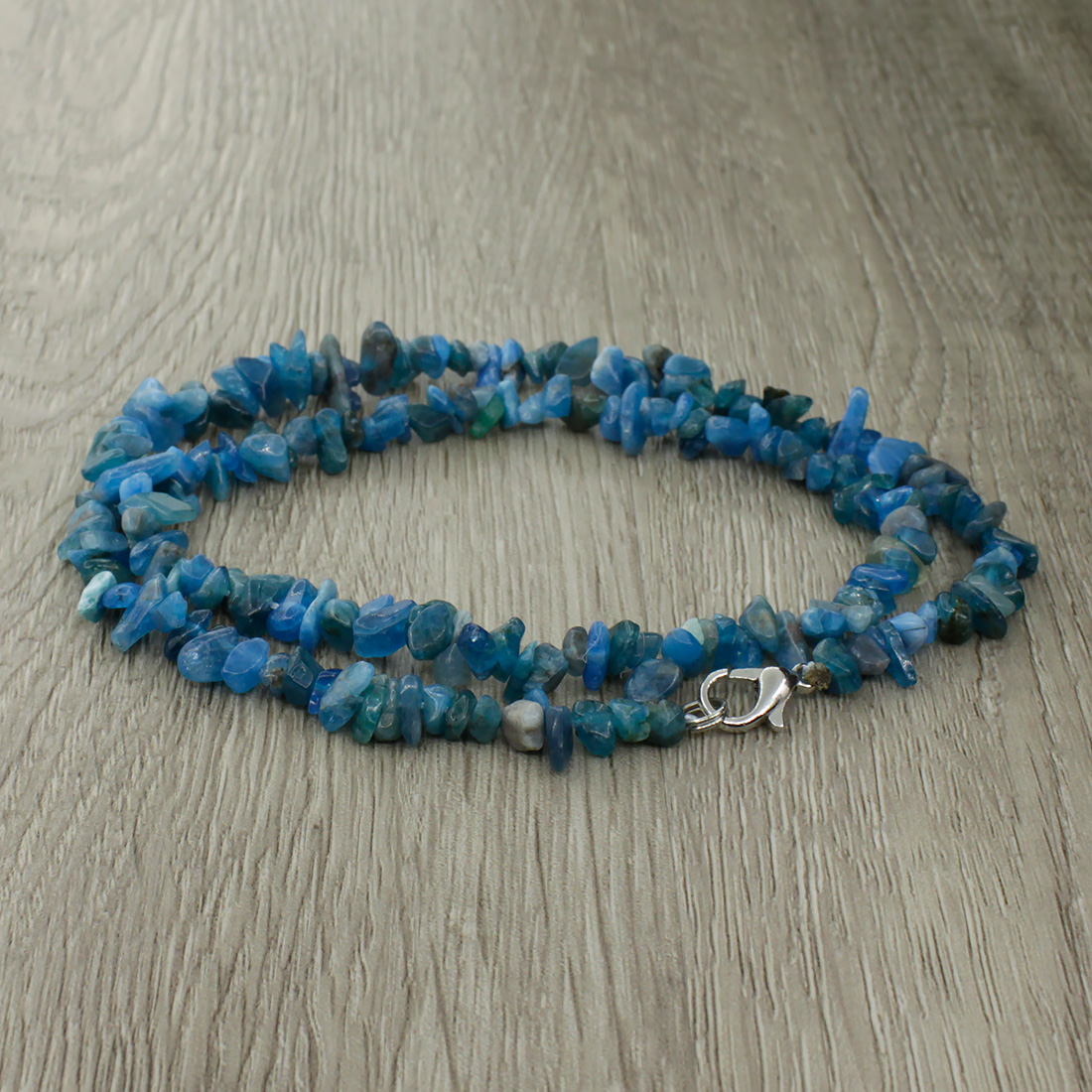 Бусы "Россыпь" из натурального апатита придадут Вашему образу шарма. Украшение на нити, с замком-карабином из ювелирного сплава. Длина бус: 45см, регулируется до 50см за счёт цепочки.