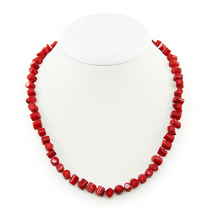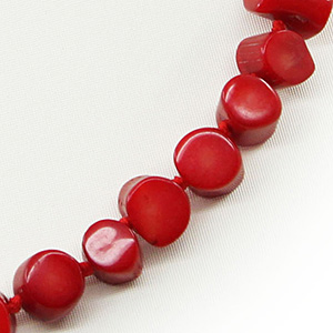 Бусы коралл красный натуральный, палочки горизонтальные 7х10мм, короткие 45см