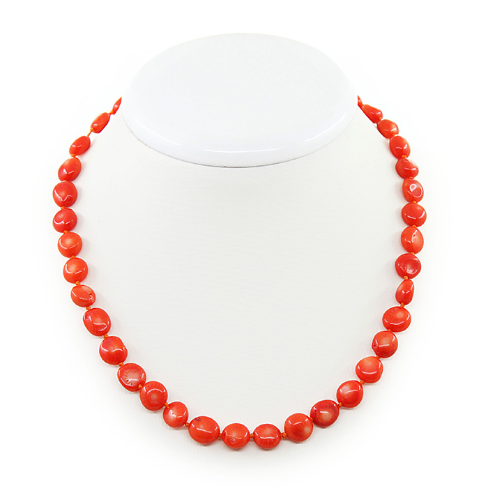 Бусы коралл оранжевый натуральный, галтовка маленькая, короткие 45см