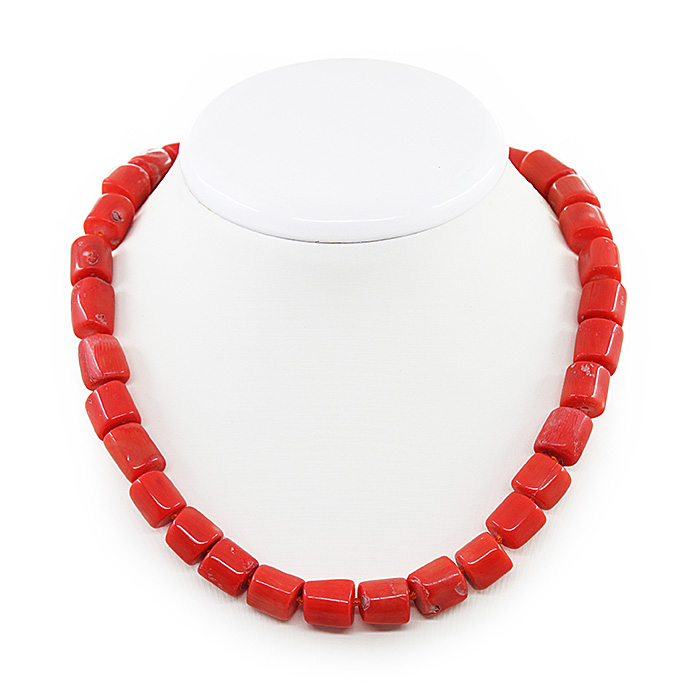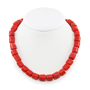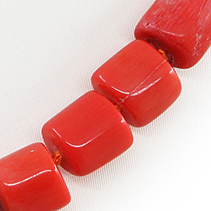 Бусы коралл оранжевый натуральный, бочонки 12х14мм, короткие 45см