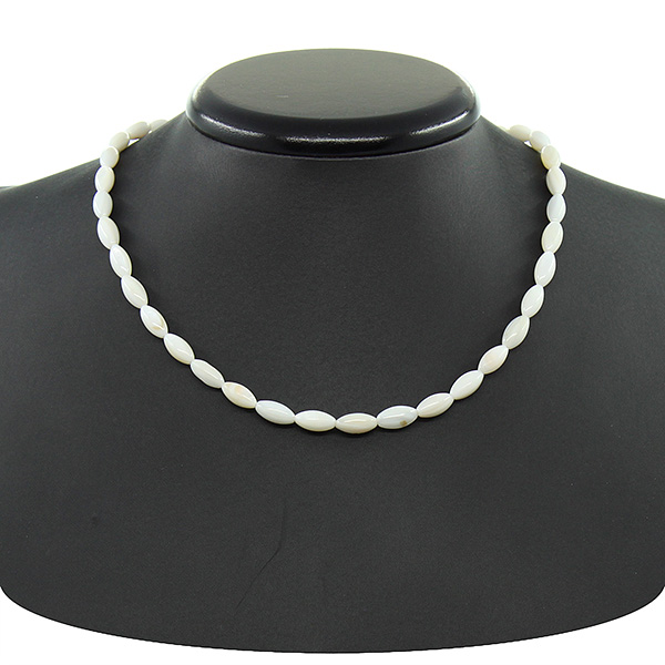 Бусы перламутр белый, зерно 5х12мм, короткие 42см