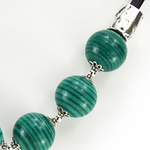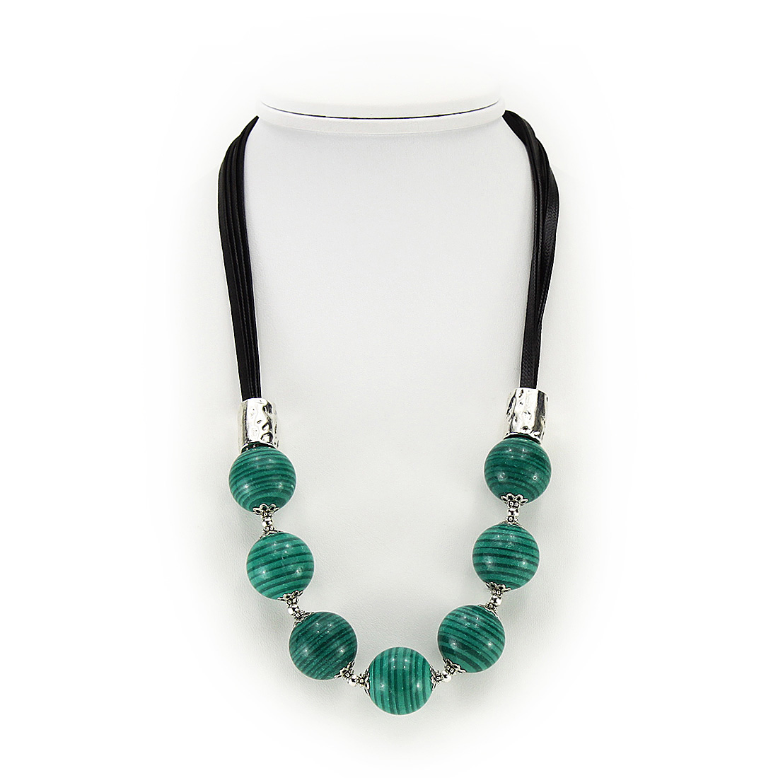 Колье на текстильном шнурке с крупными шариками из прессованного камня под малахит. Диаметр шариков 20мм, Длина 52 см. Металлические вставки: ювелирный сплав.