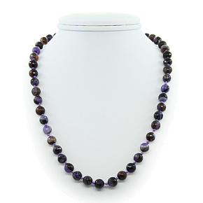 Бусы агат фиолетовый с прозрачными включениями, круглые граненые 8мм, короткие 45см