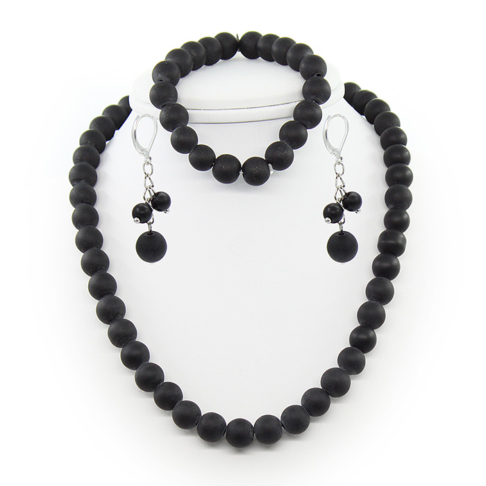 Набор "Классика" шунгит круг бусы+браслет+серьги