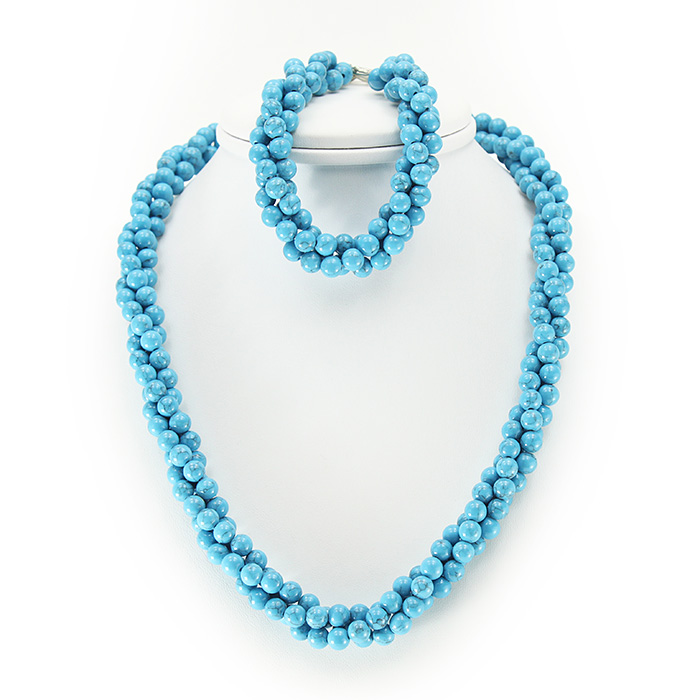 Набор из бирюзы (имитация). Размер бусин 6мм. Длина бус 48см. Длина браслета 22см.