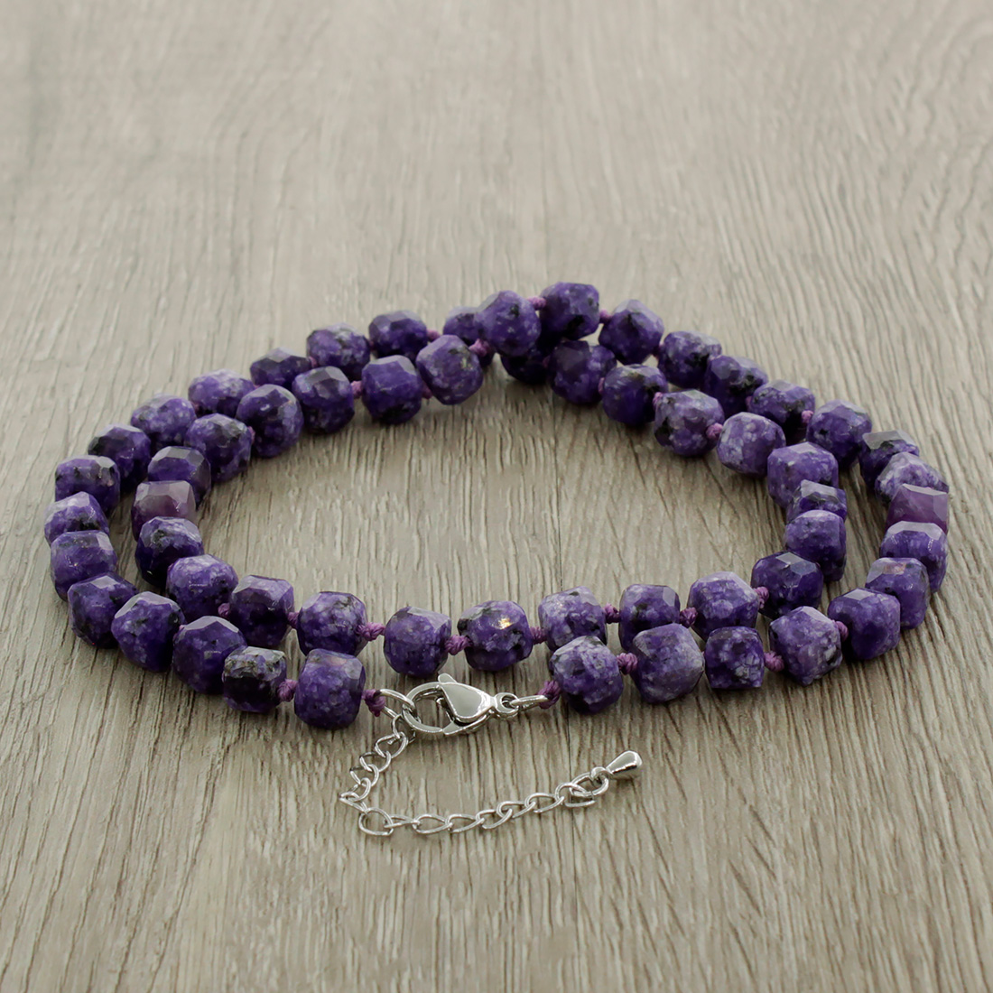 Чароит, кубики гранёные 7мм, "Текта" бусы длиной 46см