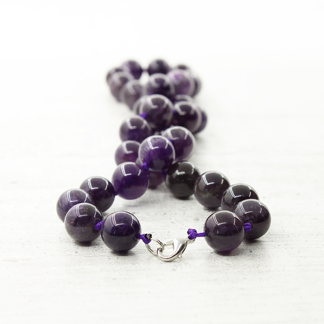 Бусы аметист темный, круглые бусинки 12мм, короткие 47см