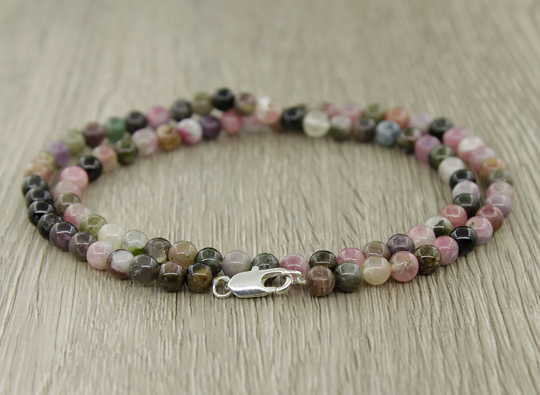 Изящные бусы из разноцветного турмалина прекрасно подойдут к Вашему повседневному или праздничному образу. Диаметр бусин 6мм, длина бус 46см.