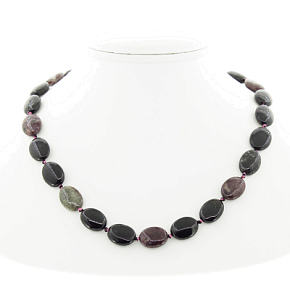 Бусы турмалин темный, плоские овальные бусинки 13х16мм, короткие 47см